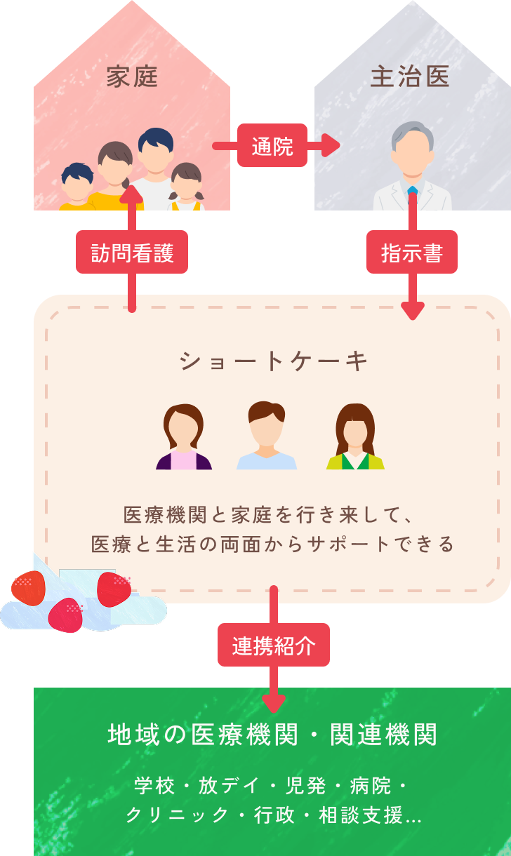 ご自宅で定期的にお子さんと家族に寄り添う訪問看護をショートケーキでは提供しています。