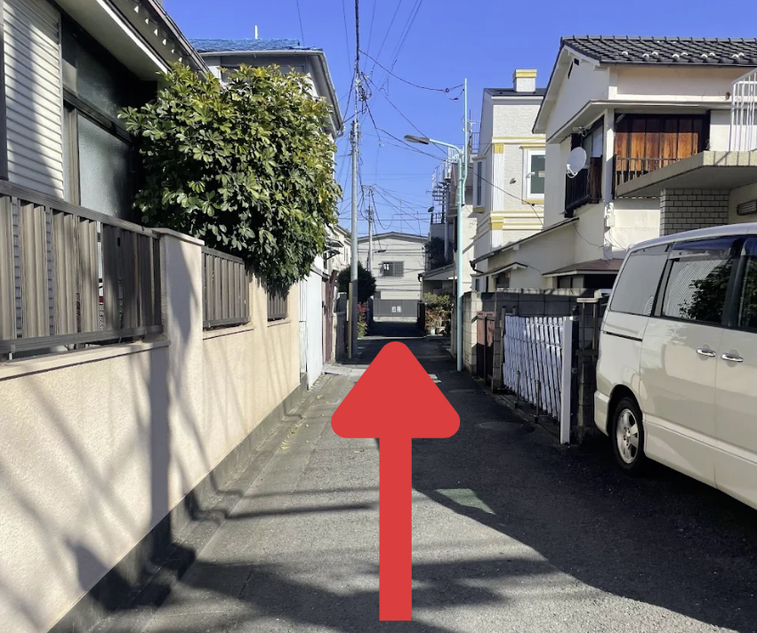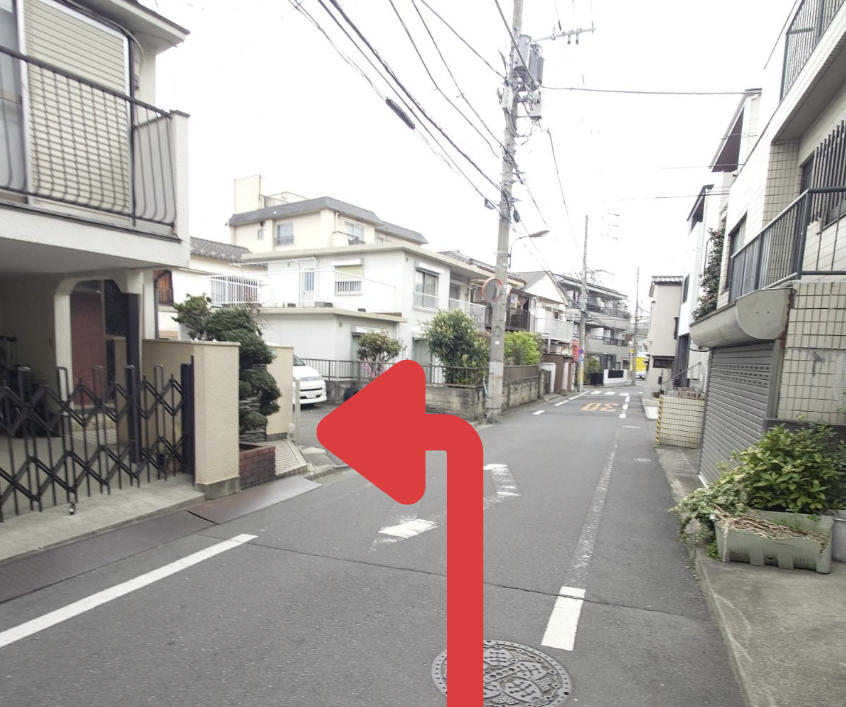 ③そのまま直進し、突き当りを左折します。